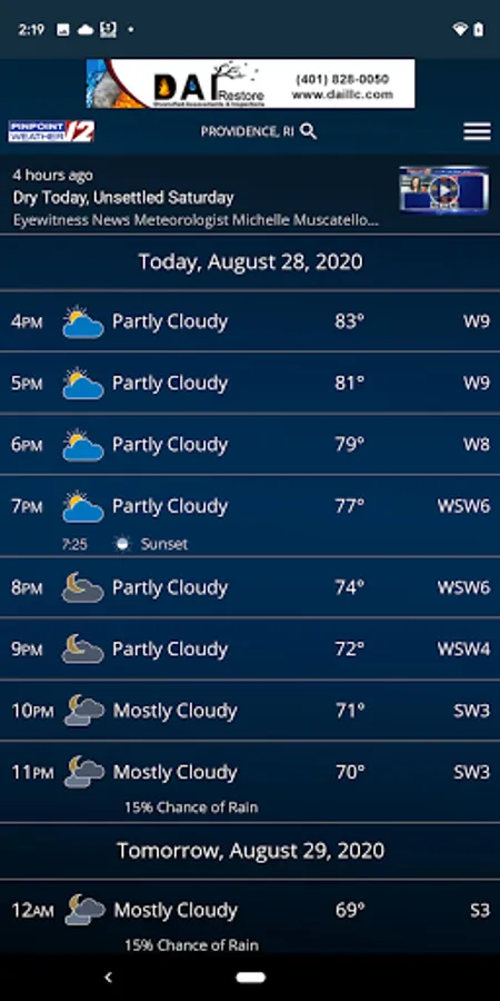 Never let the weather catch you by surprise again. The trusted weather experts of the Pinpoint Weather Team deliver Rhode Island & SE Massachusetts' most accurate hour-by-hour forecast for the next day and for the week ahead. Unlike other weather apps, you'll get a local forecast that is customized for you.