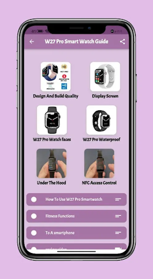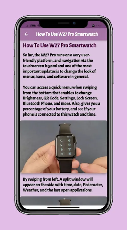 Contents of W27 Pro smart watch guide app :-
