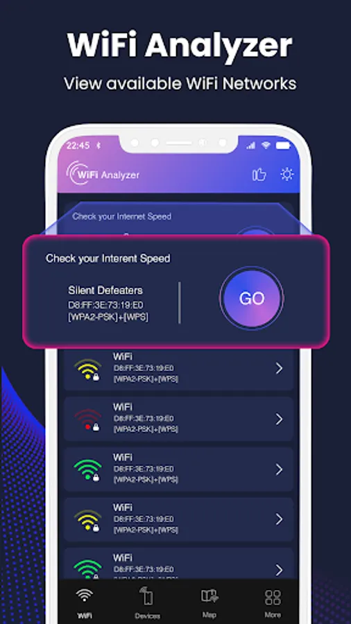 Wifi Analyzer – Wifi Speed Test is an advanced WiFi tool for analyze WiFi Networks and optimize it. WPS wifi tester and wifi scanner app allow you to optimize wifi networks by scanning wifi signal strength, find less crowded channel for your WPS/wifi router.