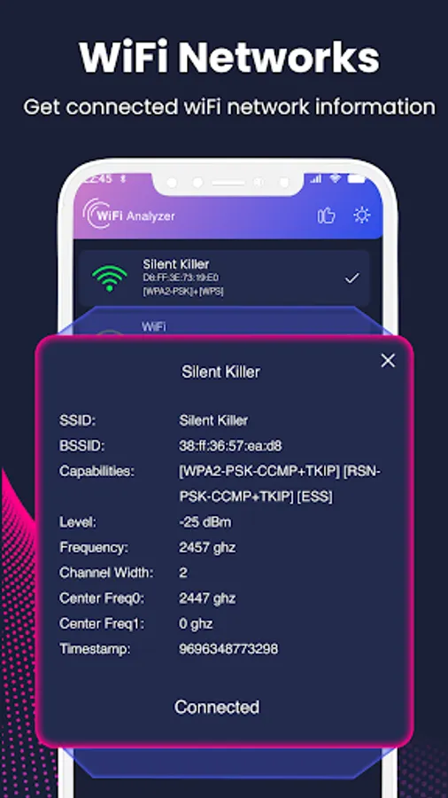 ⭐⭐WiFi Network analyzer & Wps Connect you can increase connection speed and stability. Wifi analyzer and wifi master app contained multiple functions such as Wifi connection analyzer, Wifi Speed test, Wifi password show/wifi key generator and check wifi security.