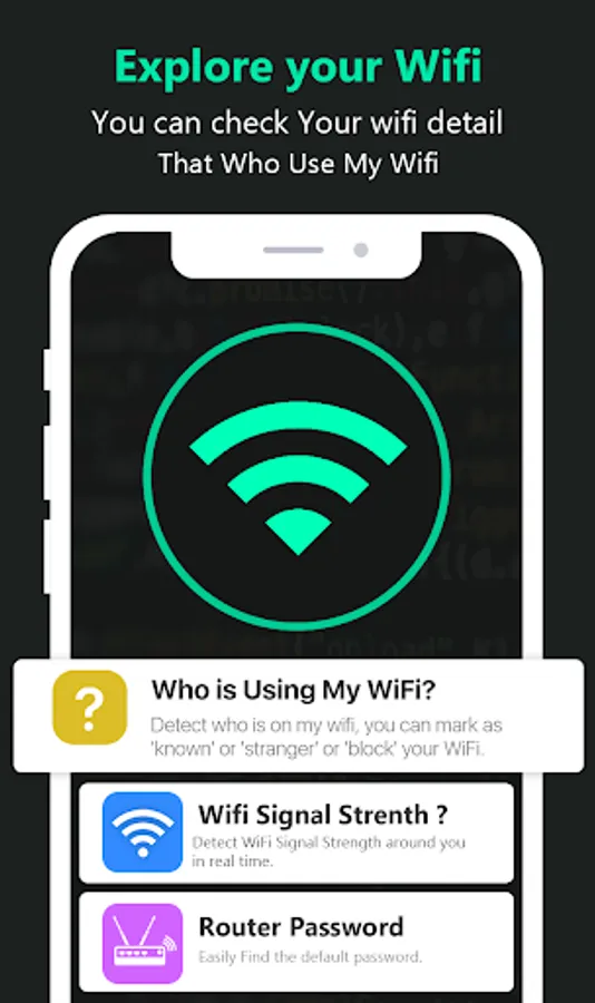 For this you need to have this Who is using my wifi connection? Application in order to check the ip users. Check all the users and you can get the phone model number and there mac address to block them if they have entered and using your wifi connection with out your permission. WI-FI Router: WIFI Safety & Wifi Security protection:The following WIFI-Scanner and network analyzer is used for your wireless connection safety from all the illegal users those who want to use your wifi for bad acts or may be stealing the speed from your wireless connection. The problem lies when you are not aware of why your wifi connection speed is going down so this application can help you for that.