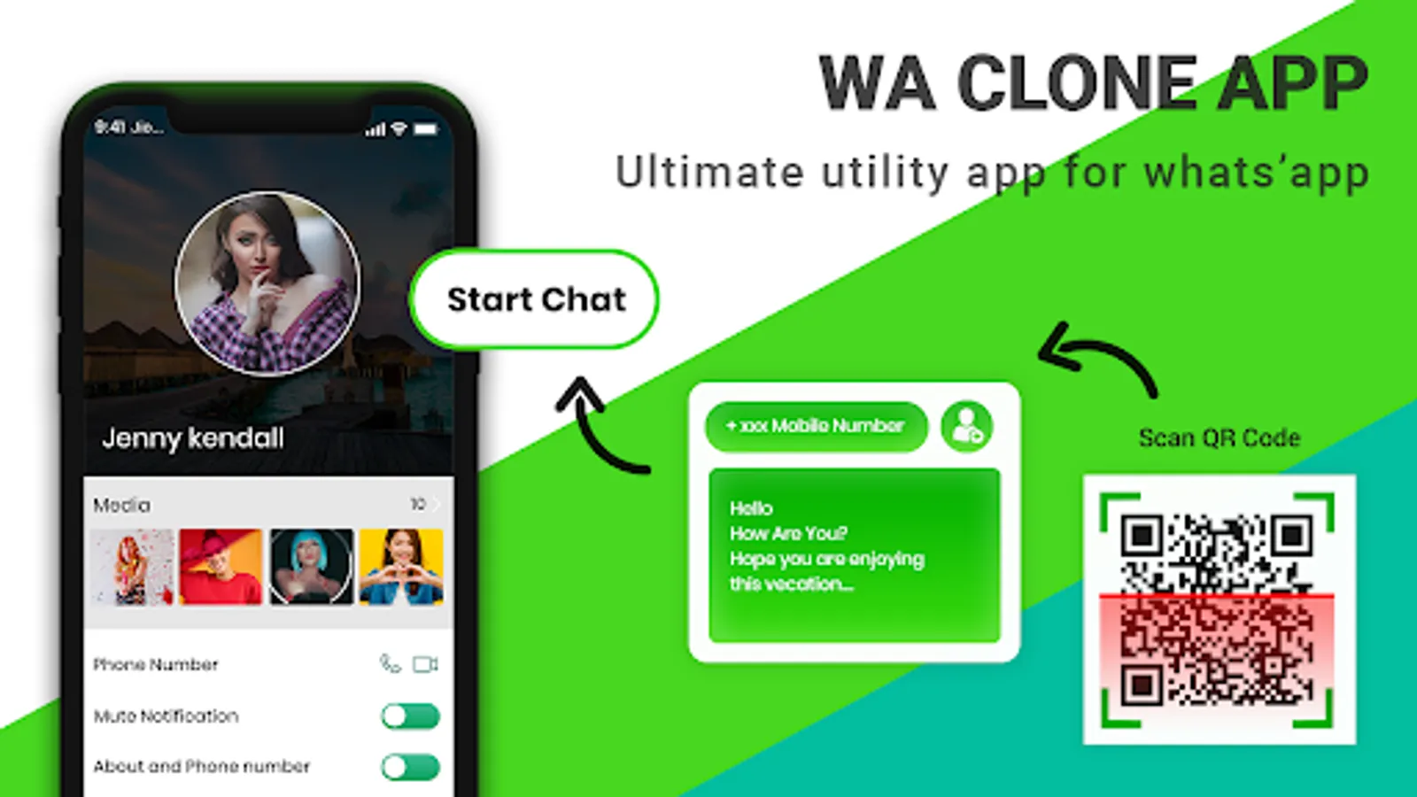 Support for simultaneous support of Whats App multi-account operation on a single phone. Try whatsapp clone now!