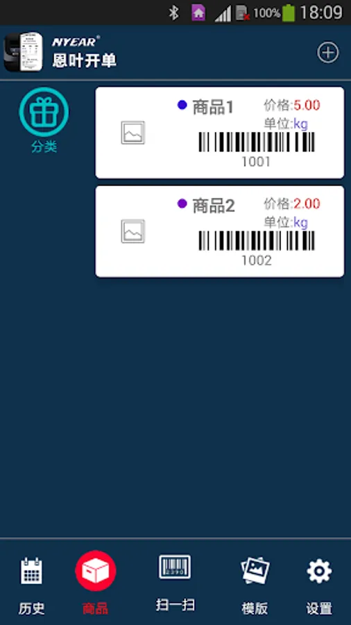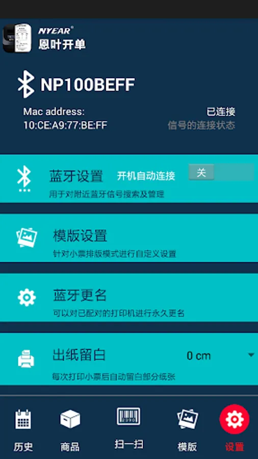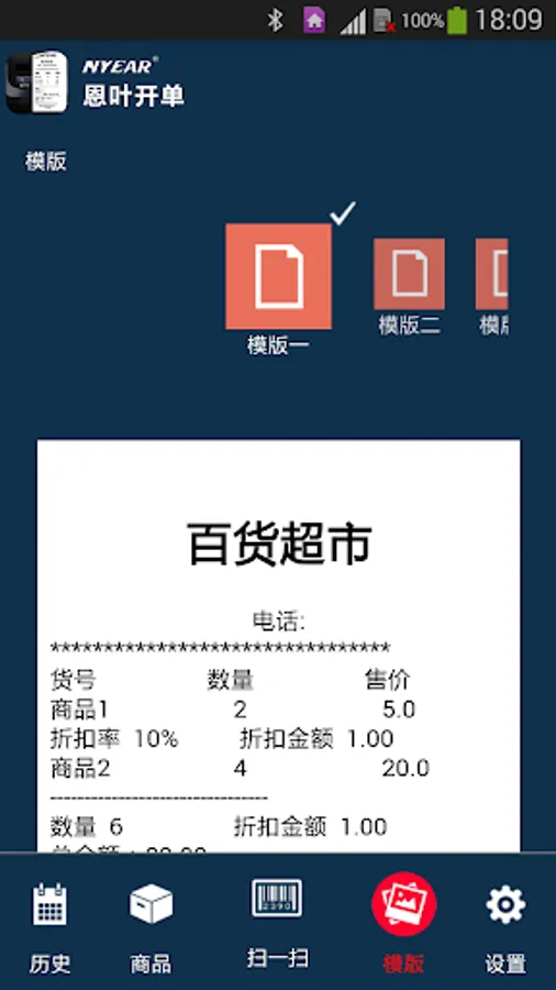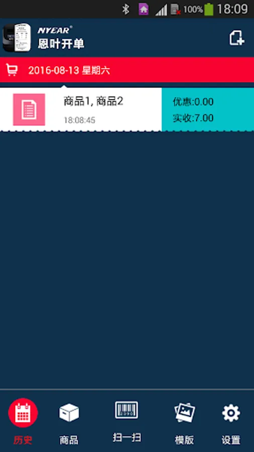 Use Bluetooth to connect Nyear Bluetooth thermal printer, configure the product, quickly add goods (sweep code), automatically calculate the amount and discount, print a small ticket.
