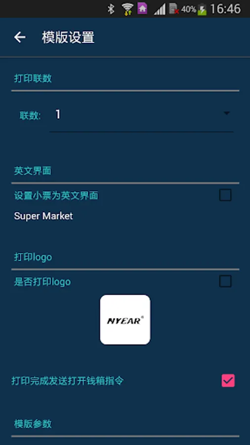 Support for three simple templates and customizable templates for small ticket receipts, and supports English mode.