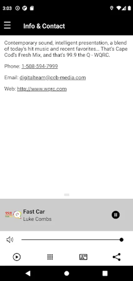 Contemporary sound, intelligent presentation, a blend of today’s hit music and recent favorites… That's Cape Cod’s Fresh Mix, and that's 99.9 the Q - WQRC. WQRC is located at 737 W. Main Street in Hyannis, MA.