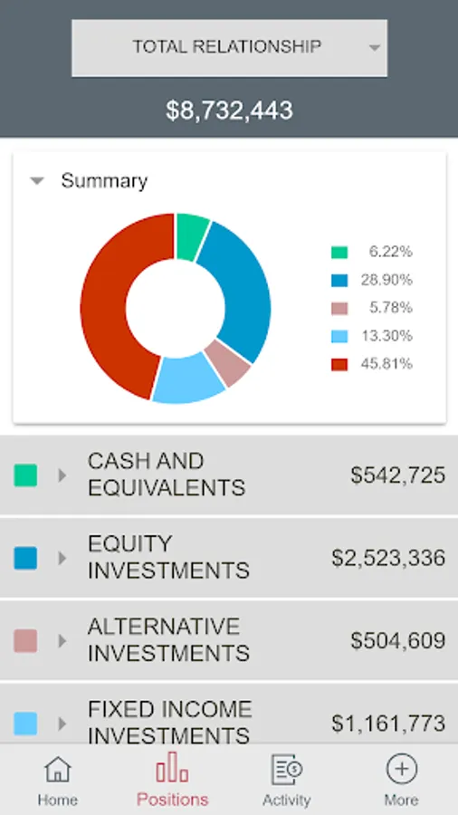 • A snapshot of your total portfolio on an aggregated basis or by individual account.