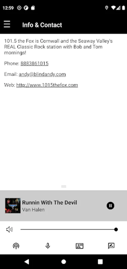 101.5 the Fox is Cornwall and the Seaway Valley's REAL Classic Rock station with Bob and Tom mornings! Tune in 6am to 10am for Bob and Tom Live, Barabara O'Reilly is on from 10am to 3pm, the Happy Hour with Blind Andy is on from 3pm to 7pm, and Brett Jones is on from 7pm to Midnight every week day- Monday through Friday