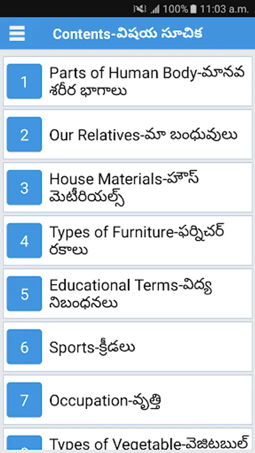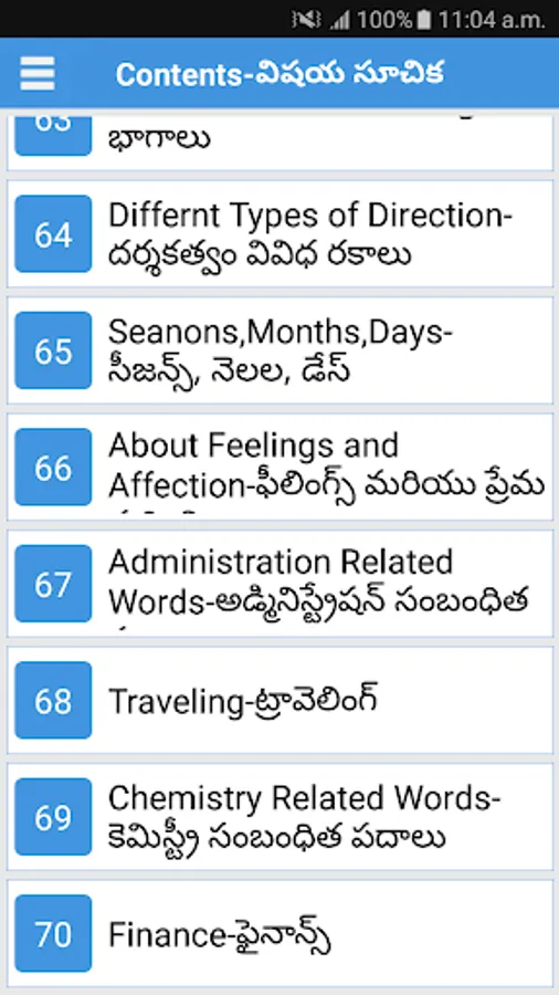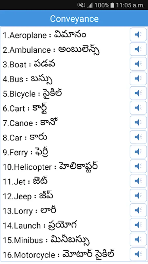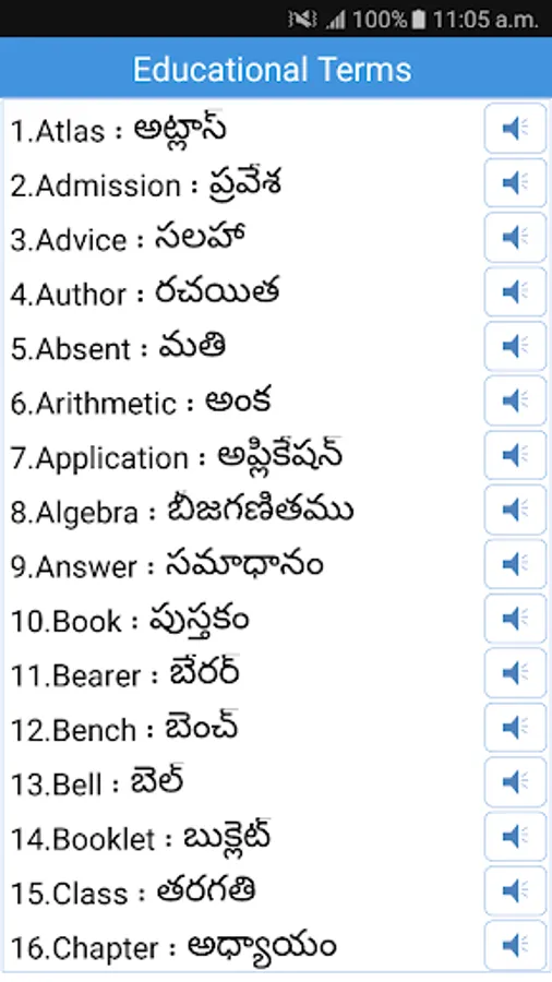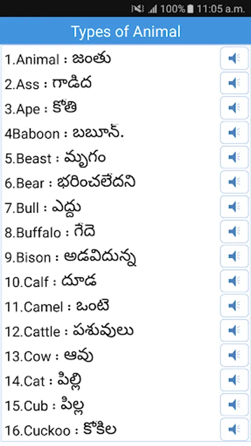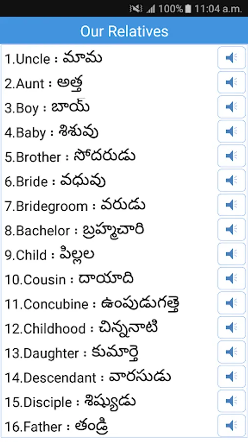 This English to Telugu Daily Words with sound help you to learn English.This Daily Words also help to learn English to Telugu Translation .It help you to speak in english. Here you also get most common daily necessary vocabulary .