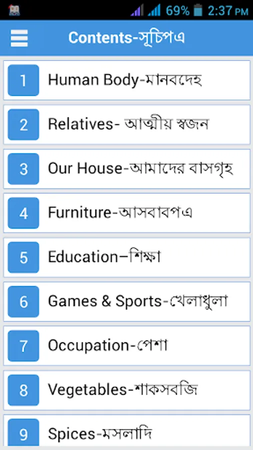 This English to bengali or bangla word book with sound help you very much to learn English.This word book also help to learn English to Bangla language.Here you will get most common words , Daily necessary words and Vocabulary.