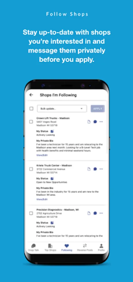 - Create Reverse Job Posts - Reverse Job Posts flip the traditional job board around. Technicians fill out a short questionnaire, and let shops reach out to them with job opportunities. The best part is the identities and contact information of technicians remains completely anonymous until they're ready to share.
