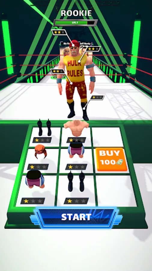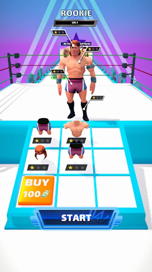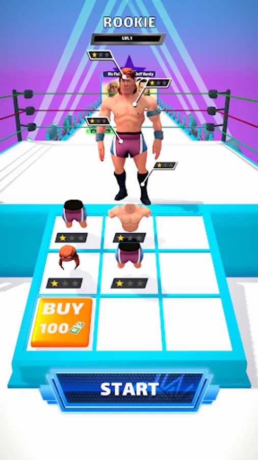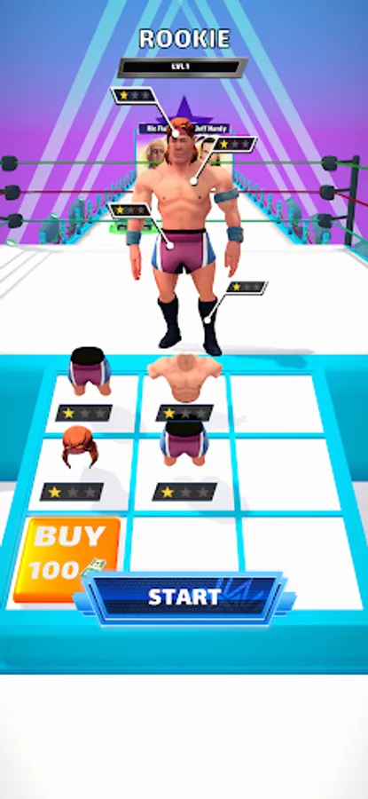 Make sure everything is ready before you start because wrestling is so hard. Spend what you earn to make yourself better, buy items, merge the items you bought, and be ready for anything before going to the ring. Championship belts await you!