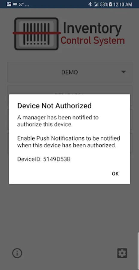 * The first time a device attempts to log in, access is denied. A manager must enable the device in order to access the system and upload inventory scans.