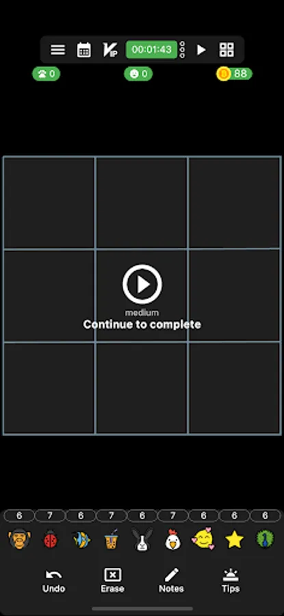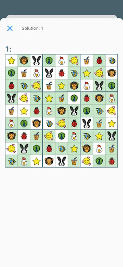 You can solve sudoku puzzles on 3 display mode, numbers, emojis, colors fill.