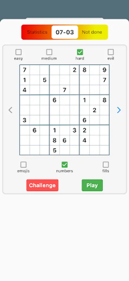 You can solve sudoku puzzles on 4 difficulty levels, like easy, medium, hard or evil.