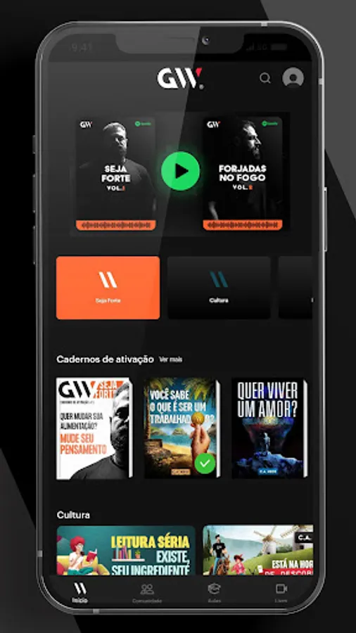 This is GW's proposal. An intuitive platform with an incredible design where you can access the best content on the internet about personal development and maturation, divided into seven main pillars: