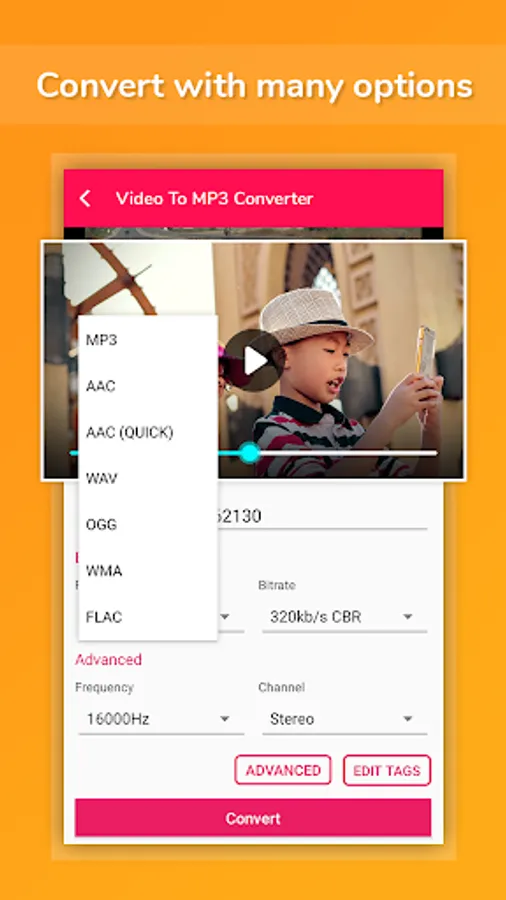➤ Advance options to change Bitrate, Frequency, Channel of audio.