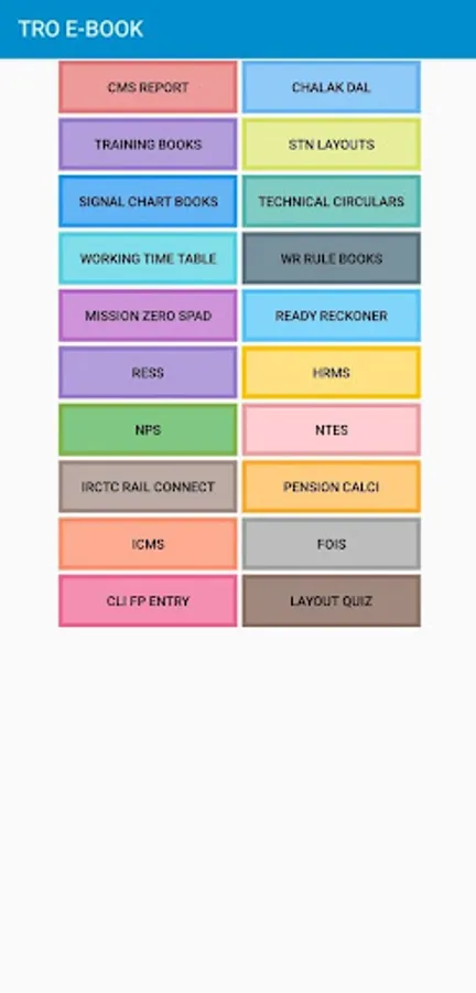 Information like Signal Location Books & WTTs of all divisions of WR, Technical Circulars (TCs) issued by HQ-CCG, Training Books on Locomotives for LP/ALP published by ZRTI-UDZ/ZETC-BRC, Ready Reckoner, Station Layouts, Layout Quiz, CLI FP Entry, and Rule Books (i.e., G&SR, Operating Manual, Accident Manual, Various Amendment Slips.) are available in the App. Other frequently used applications by Railway employees like RESS, HRMS, NPS, NTES, IRCTC Rail Connect, Pension Calci, Chalak Dal, e-Locos TSD etc have been linked in the App. Also CMS Report, ICMS, FOIS and CLI FP Entry site can be referred from this APP. All efforts are being put up to improve the App further.