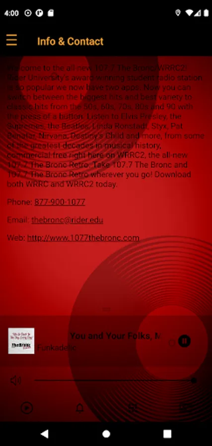 The all-new 107.7 The Bronc Retro - WRRC2 is Rider University's super oldies, online student radio station. We go back in the day, every day, playing classic hits from the 50s, 60s, 70s, 80s and 90s!
