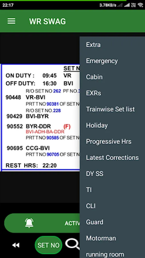 This app provides full day to day working of WR suburban working, corrections in G&SR, Accident manual, contact list to be used during emergency,progressive hours details.NH and holiday working detail,Train wise set search, Automated alarm etc