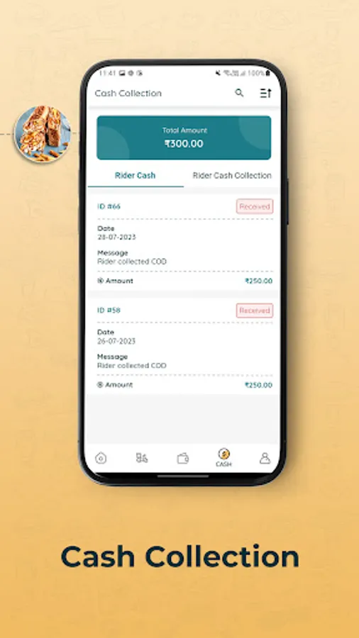 Wallet Management: The rider app allows a rider to check their cash collection history and the amount of wallet balance in his account, and can also check their wallet history.