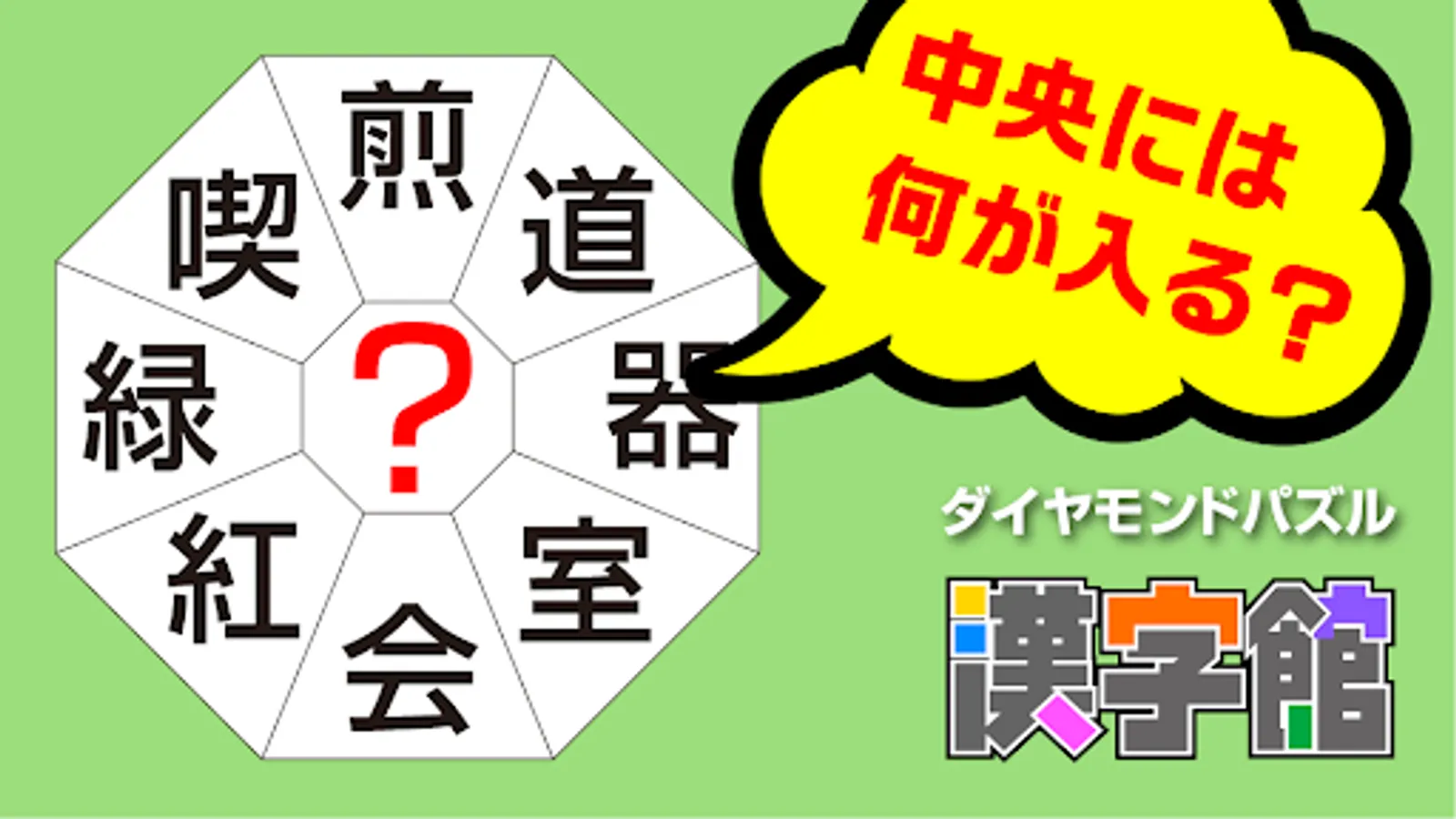・ [Diamond Puzzle] Select the kanji that fits in the center of the octagon from the candidates and complete the two-character idiom!