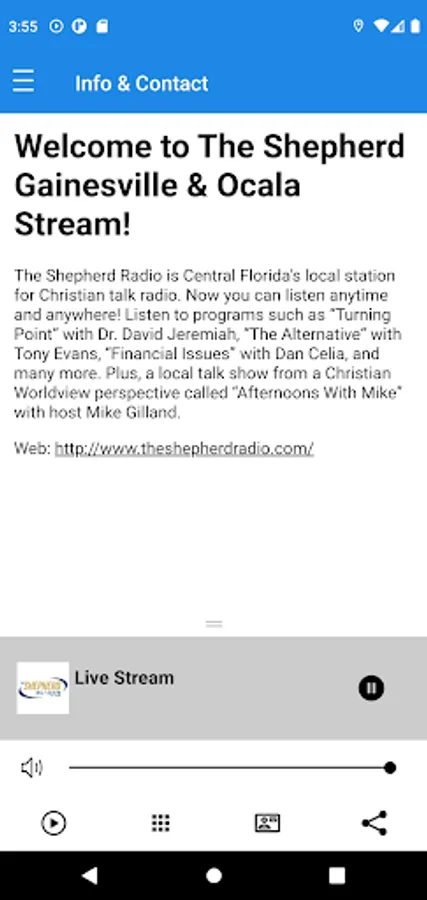The Shepherd Radio is North Florida's top station for Christian talk radio. Now you can listen anytime and anywhere! Listen to programs such as In Touch with Dr. Charles Stanley, Truth for Life with Alistair Begg, Walk in the Word with James MacDonald, and more!