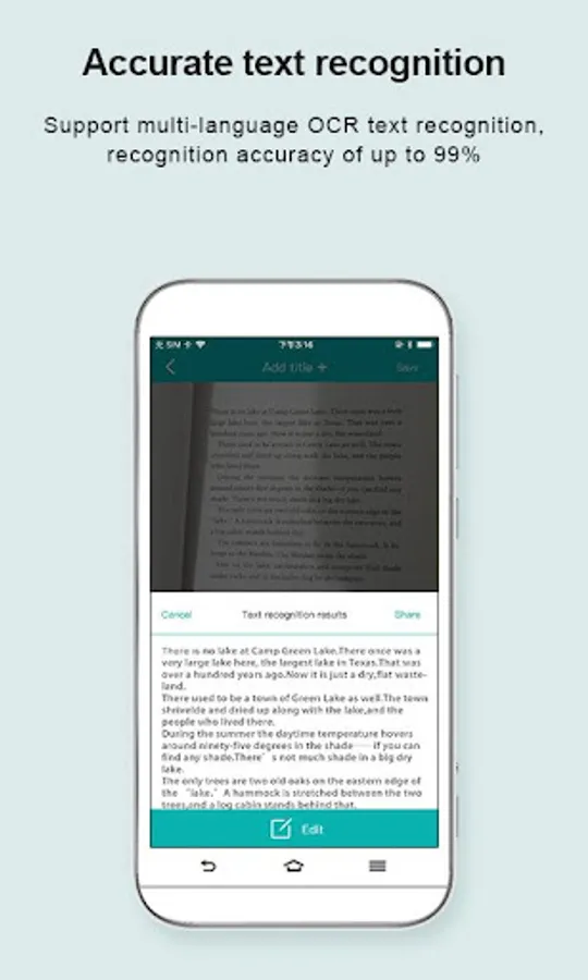 5. Text Recognition (OCR) ---- OCR (optical character recognition) feature extracts texts from single page for further editing or sharing.