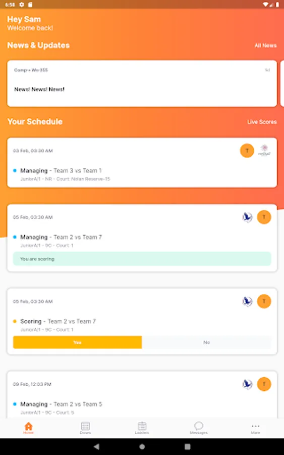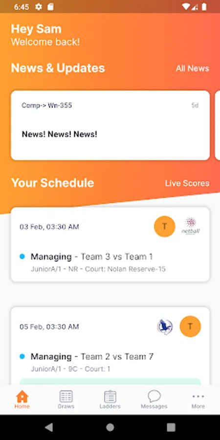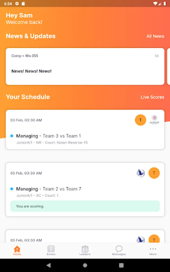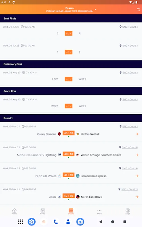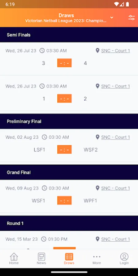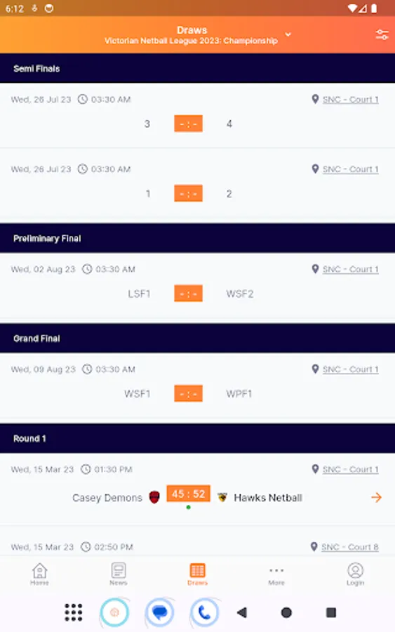 Spectators can now access real-time game scores, time, court location, draw and ladder updates instantly as well as receive notification and news from competition organisers.