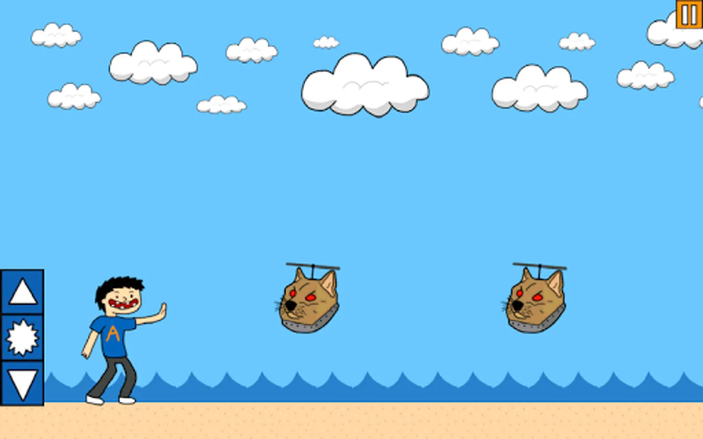 Destroy the evil dogebots and save the day! Jump, shoot, and duck as you travel along the beach in this side-scrolling adventure.