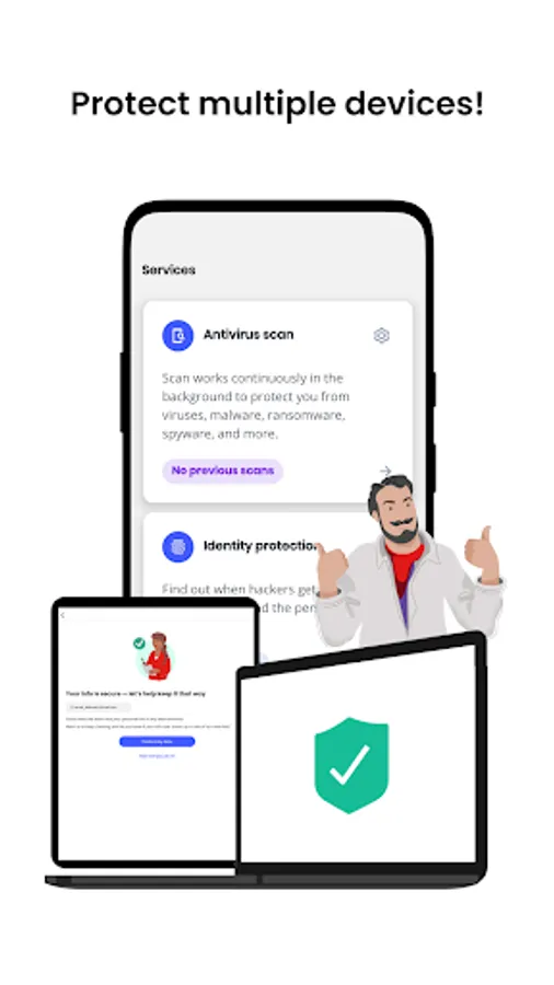 Secure multiple devices across compatible smartphones, tablets, PCs, and Macs. Our award-winning antivirus virus cleaner is only available on PCs and Android devices.