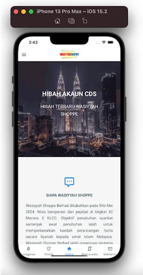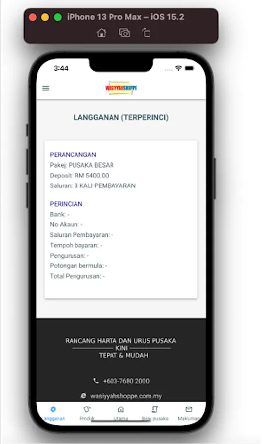 Fungsi utama apps ini adalah bagi memudahkan pelanggan Wasiyyah Shoppe Berhad melihat status langganan dan maklumat peribadi.