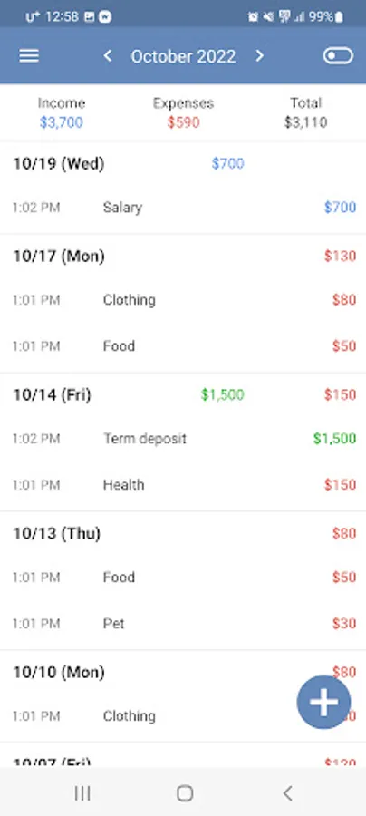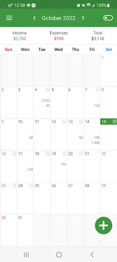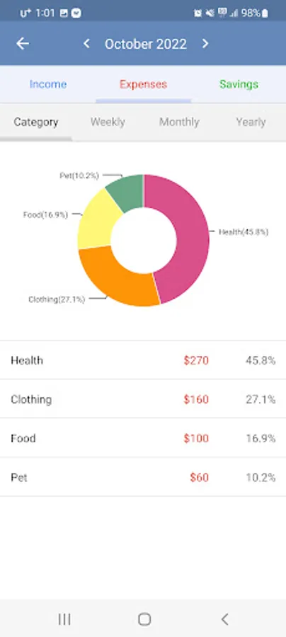 It supports charts by category/period and statistics by weekly/monthly/yearly.