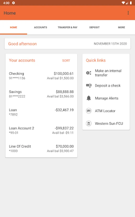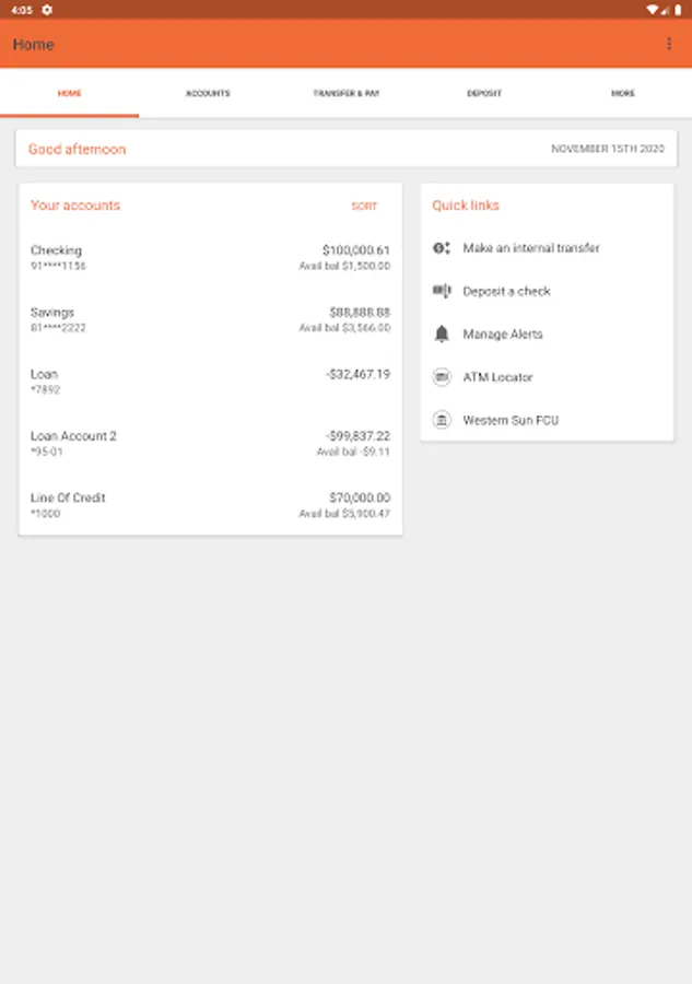 Bank on the go with the Western Sun Federal Credit Union (WSFCU) mobile app. Your account information is at your fingertips 24/7/365! Not only can you make transfers, pay bills and see checks that have cleared, you are welcome to apply for additional an savings account, checking account, certificate of deposit or loan. Need cash in a hurry? Find the closest ATM or WSFCU branch through our app. Rest assured, our app is safe and secure, safeguarded with advanced encryption technology to prevent unauthorized access.