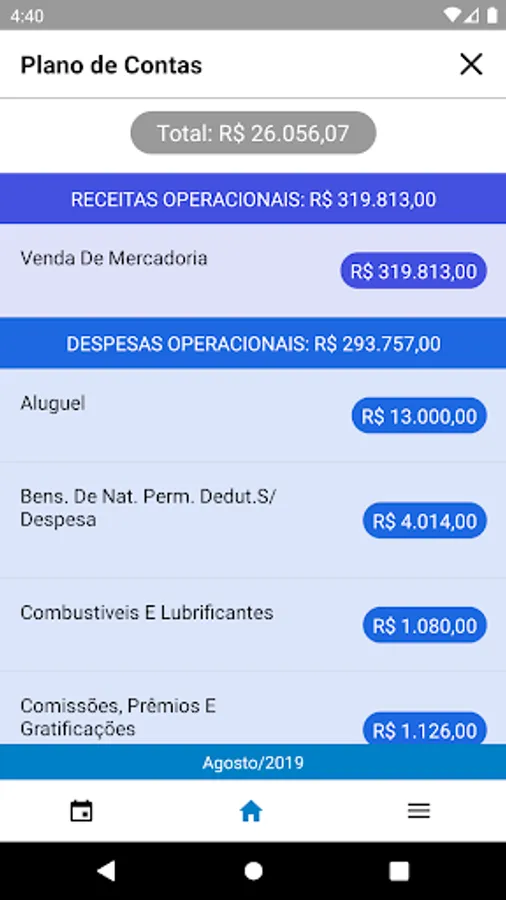 classified in the chart of accounts (according to your company), easily available and divided into the following indicators: