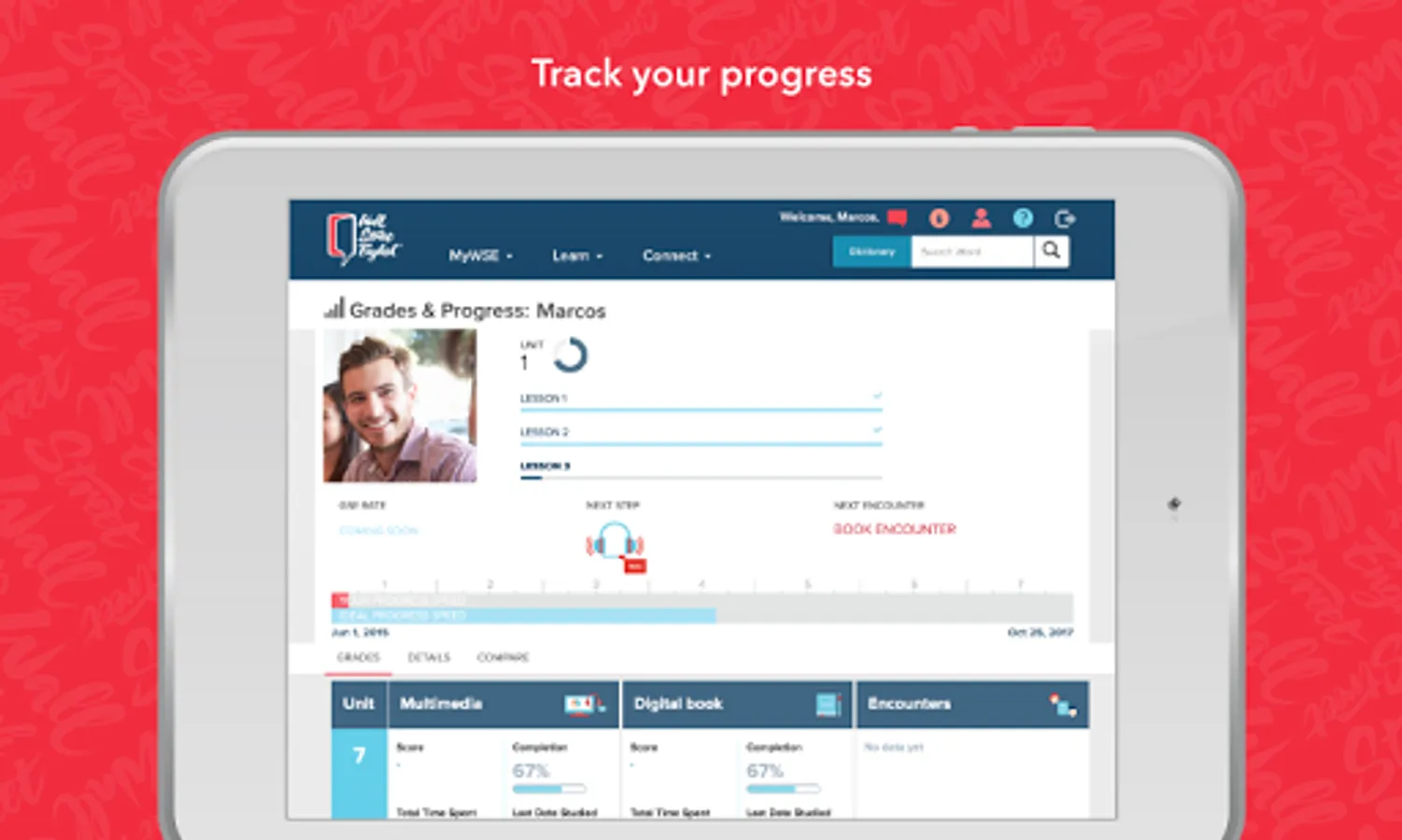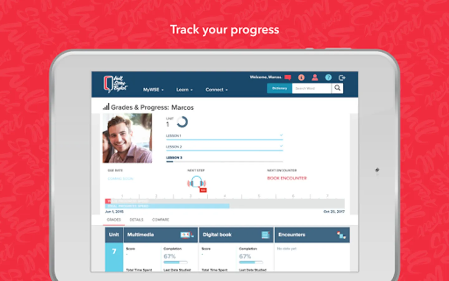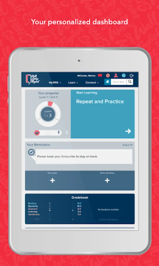 Access your personalized Student Dashboard where you can track your progress as you improve your English and find information about your Wall Street English course