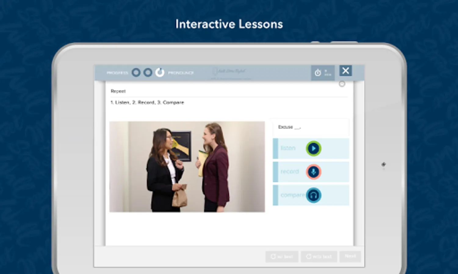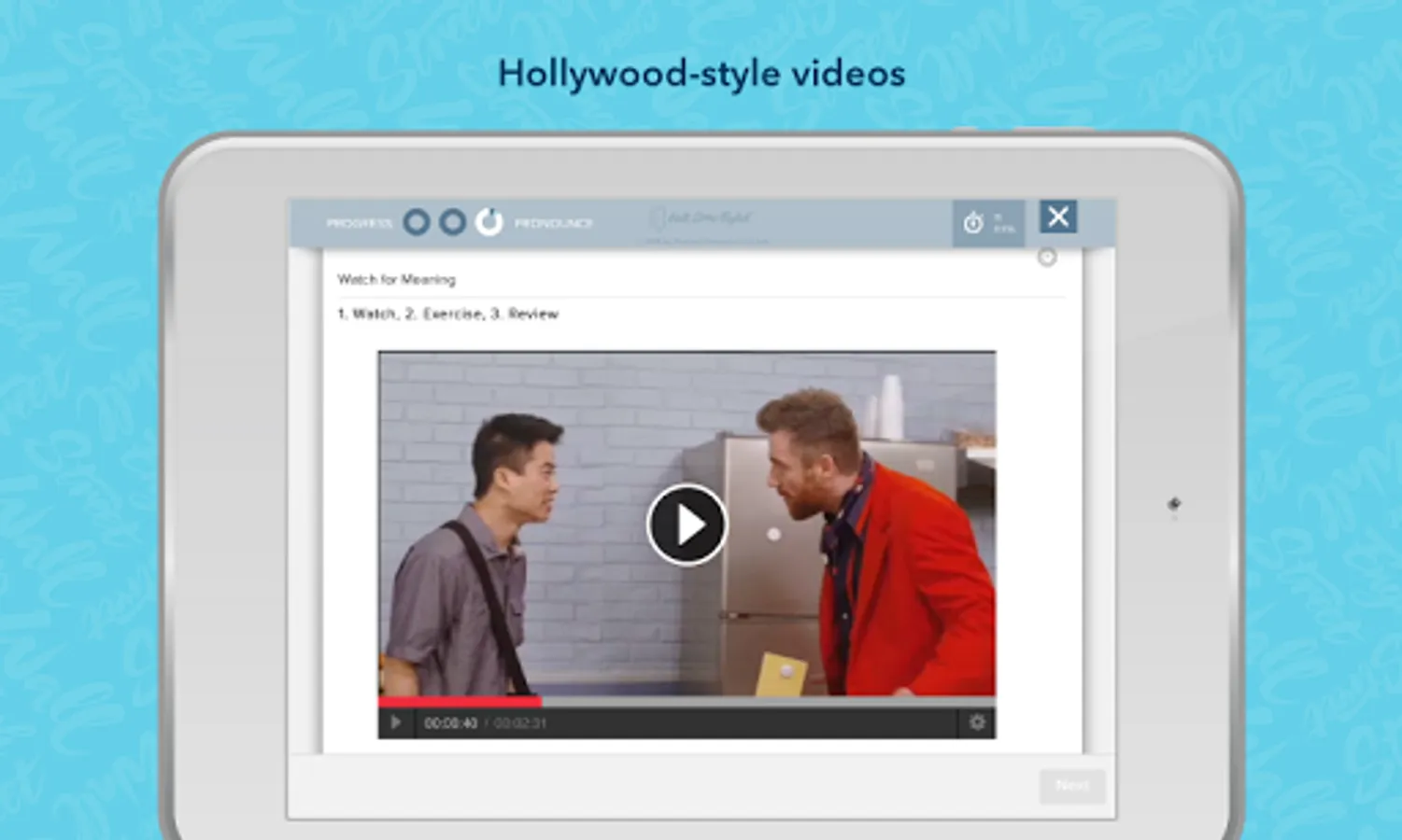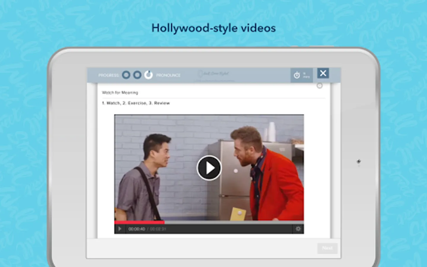 Learn English on the go with Wall Street English. With the Learn English app you can study English online, complete English lessons, track your progress in your English course, access your personalized Student Dashboard, and connect with English teachers and friends from around the world from your tablet, giving you the flexibility to learn English when it is most convenient for you. You can fit learning English into your busy life!