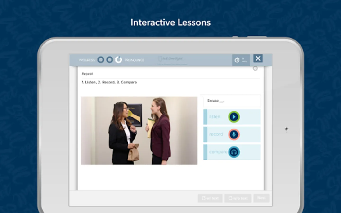 The Learn English app is available to current students learning English at Wall Street English. With the app you can: