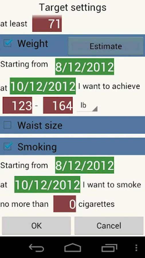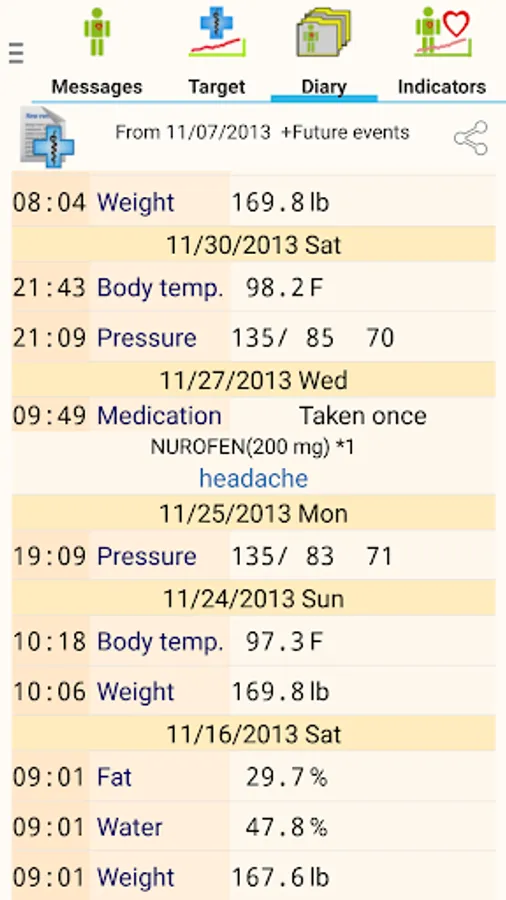 - tracking of: weight, body water and fat, waist size, height, blood pressure, body, temperature,