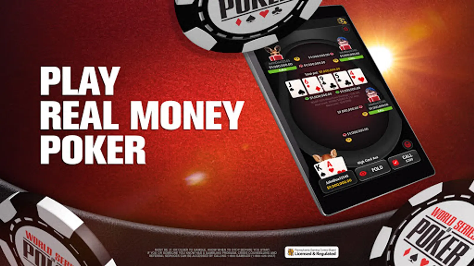 Take the best poker games with you on the go, anywhere in Pennsylvania with World Series of Poker Real Money Online Poker app.
