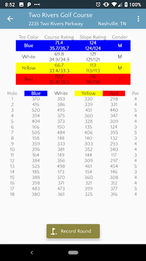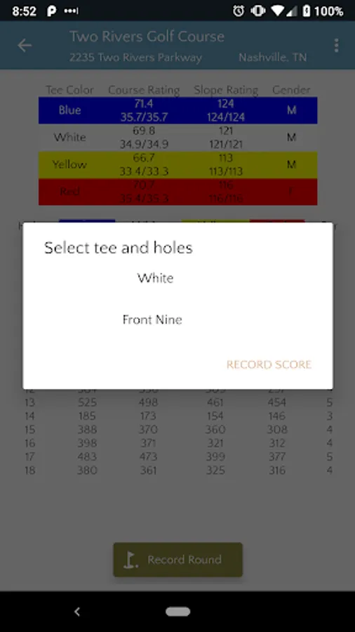 Add a golf course by filling in the information you find on the scorecard (camera scanner coming in the future!) or select a course already added by another golfer