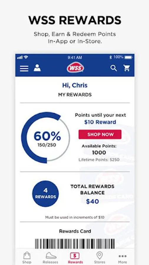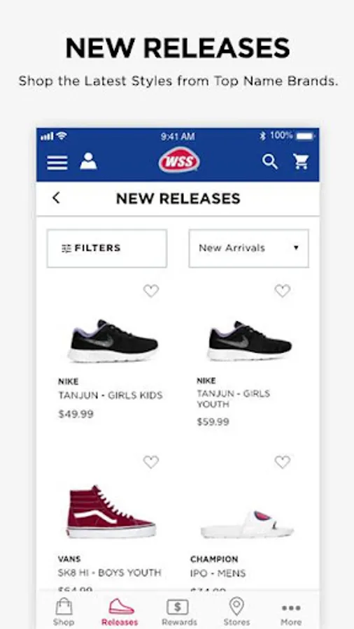 The WSS Rewards App is your source for all your shoe needs. WSS has the largest selection and best values on athletic and casual footwear for the entire family. Shop thousands of styles from top name brands like Nike, Jordan, adidas, Vans, Converse, PUMA, and more!