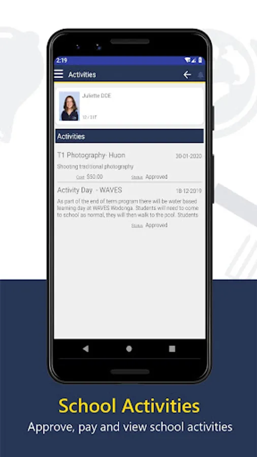 ° student activities - provide consent for excursions