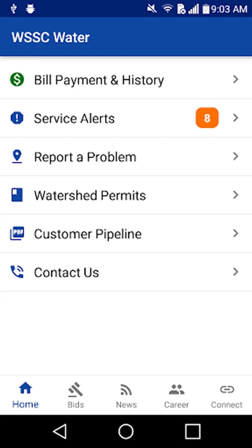 The WSSC Water mobile app provides you with tools to pay your water/sewer bill, and to view/report water emergencies. The app also provides information on current WSSC Water news and contact information. You can also connect with us on Facebook, Twitter and YouTube through the app.