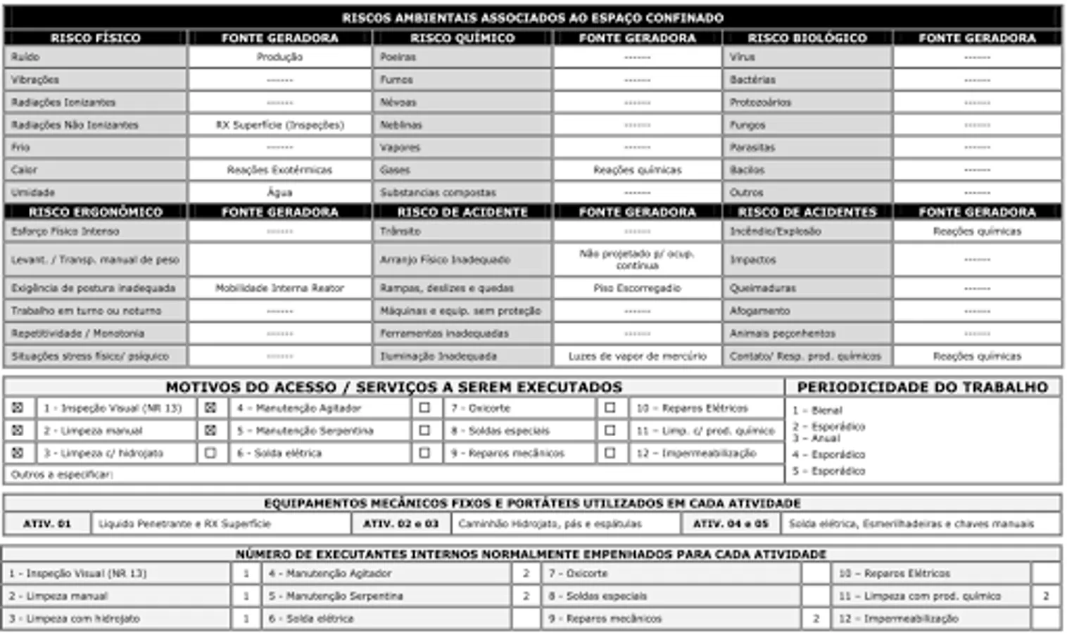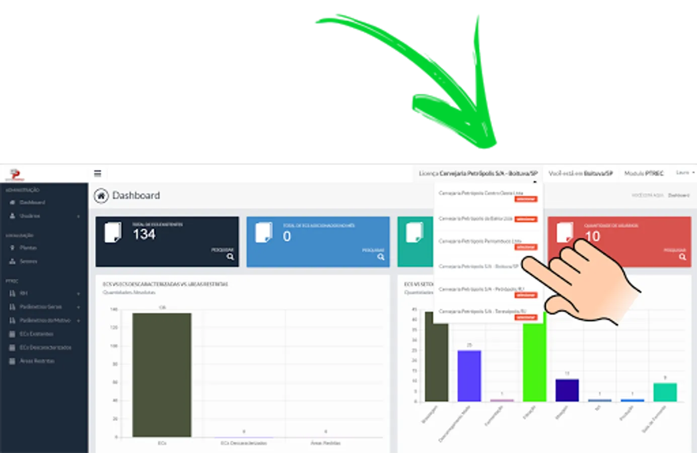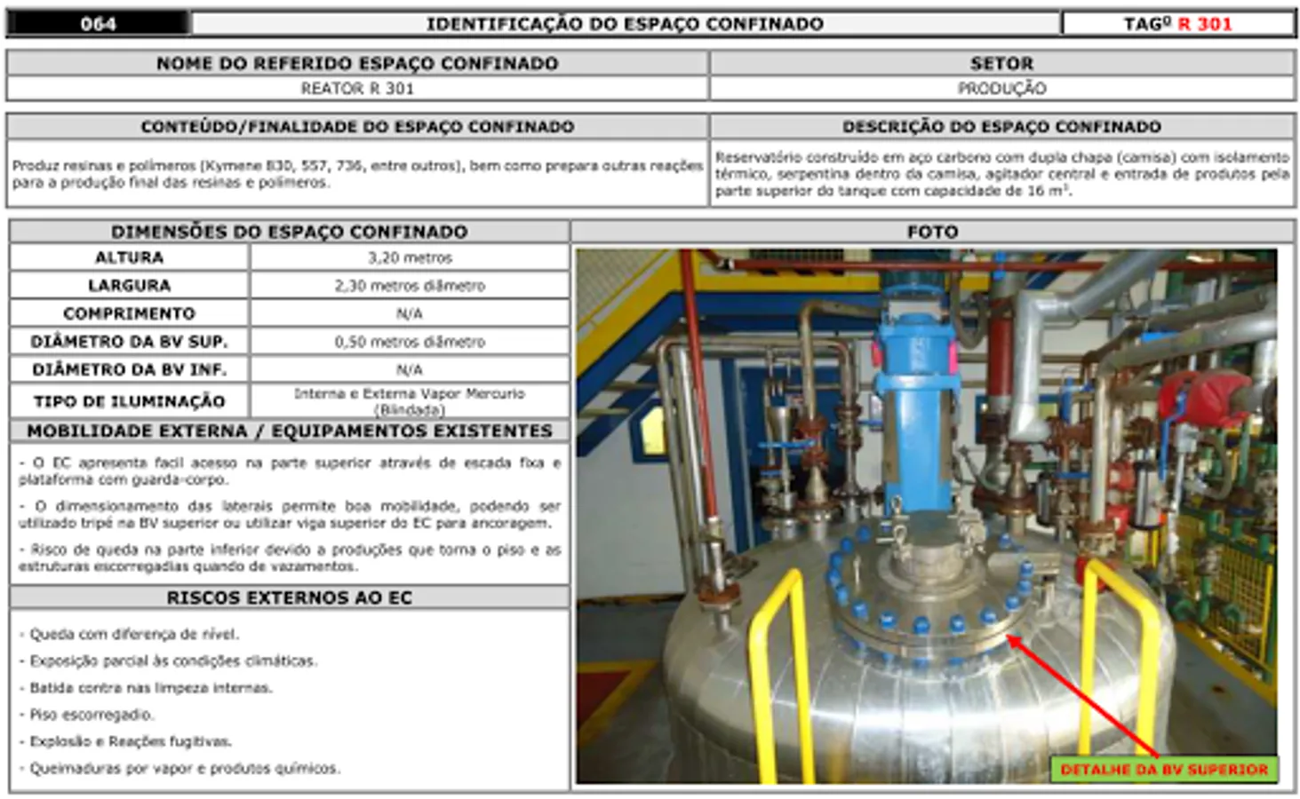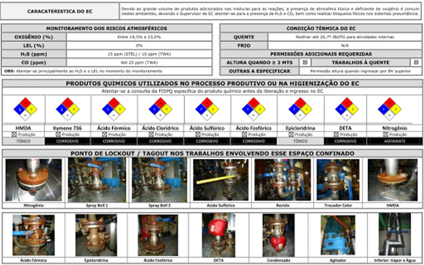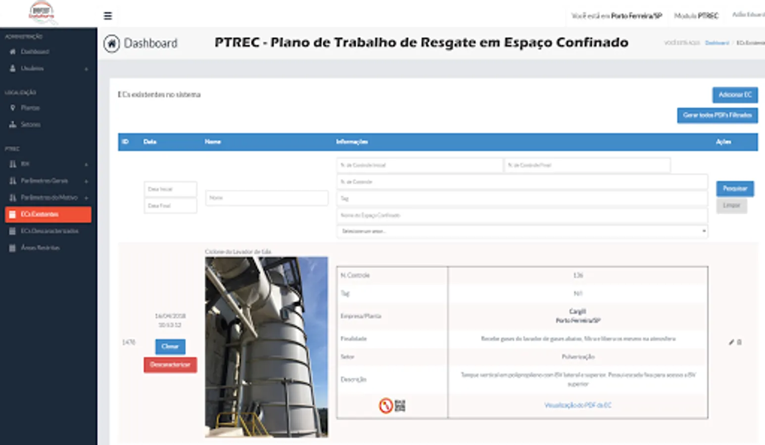 The confined spaces and restricted areas management module meets the requirements of Ordinance 1,690 (Nova NR 33), allowing the user to manage in a playful but consistent way all data and risks of ECs (Confined Spaces) and ARs (Restricted Areas) of their company.