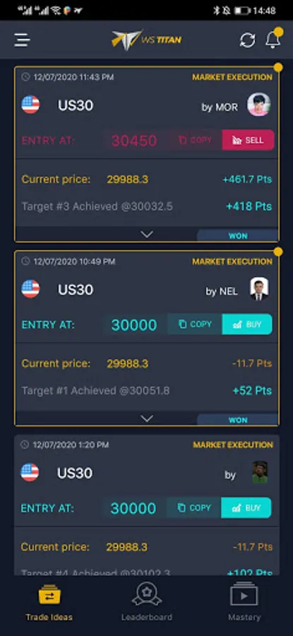 The Titan app comes with basic forex education course mastery, US30 education courses and strategies. Gain access to market forecast, and real time alerts from our educators about live stream sessions related to stock/indice market. You will also have access to leaderboard to see top performing educators, and new up to date contents.