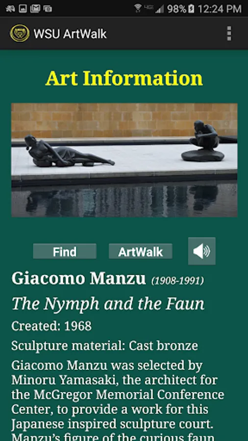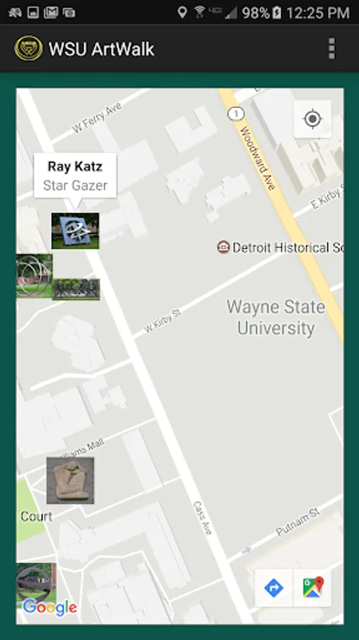 We invite you to take a stroll through our parklike stretch of lawns, architectural treasures, paved malls and courts with the ArtWalk mobile app in hand. Learn more about the diversity and excellence of sculptures in the University Art Collection and truly feel the presence of art and nature all about you within the heart of the city of Detroit.