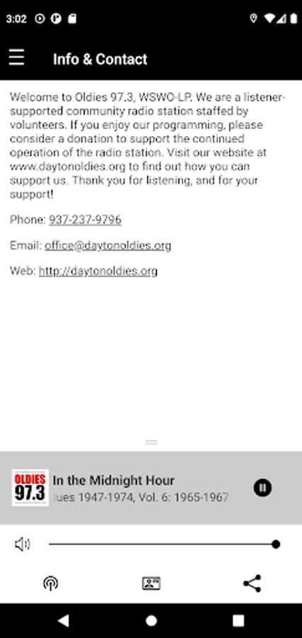 Live streaming audio from Oldies 97.3 WSWO-LP, a listener-supported and volunteer-operated community radio station in Huber Heights, Ohio. We preserve the great music of the 50's, 60's, and 70's, presented with live, local announcers. We also broadcast live coverage of Wayne High School sports and community events.