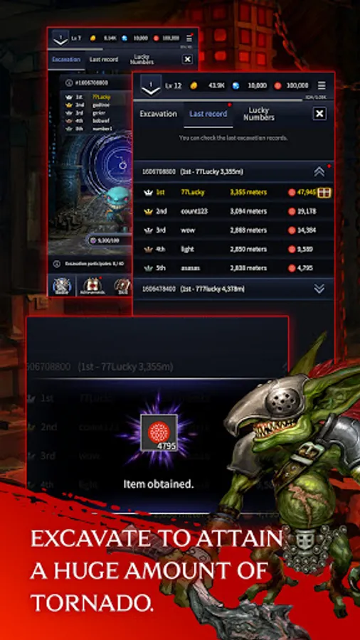 - Take down monsters to get chances to excavate and receive TORNADO rewards