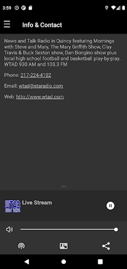 News and Talk Radio in Quincy featuring Mornings with Steve and Mary, The Mary Griffith Show, Clay Travis & Buck Sexton show, Dan Bongino show plus local high school football and basketball play-by-play. WTAD 930 AM and 103.3 FM