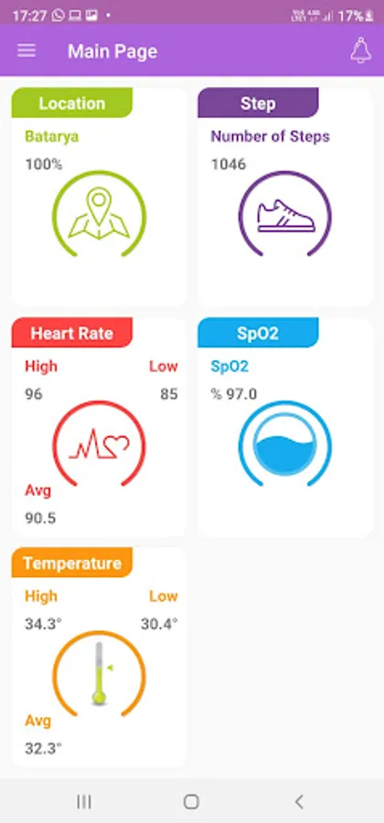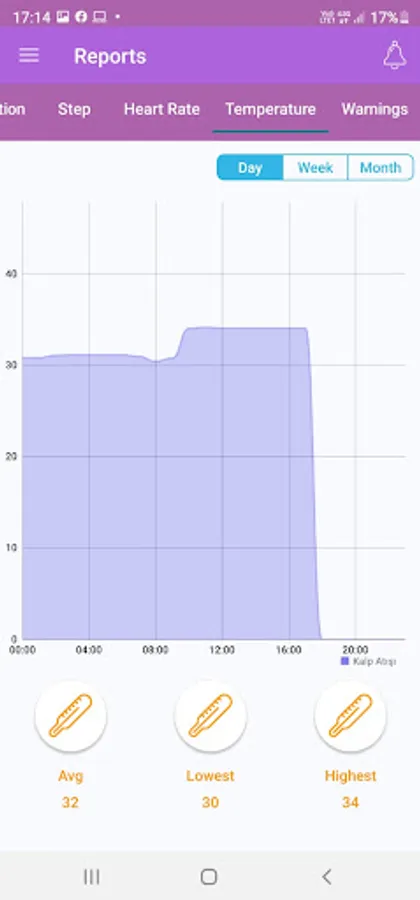 - View Daily, Weekly and Monthly Temperature, Heart Rate and Steps Reports
